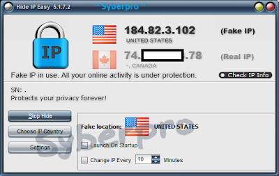 Hide IP Easy is a small and easy to use tool that allows you to hide your real IP with a fake one. You can surf anonymously, prevent hackers or identity thieves from monitoring your online activity or stealing your personal information, and provide full encryption of your online activity, all with a single click of a button.